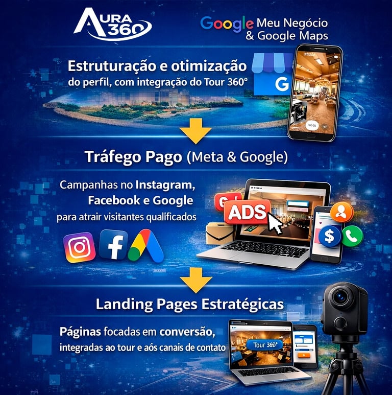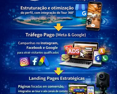 Estruturação e otimização do perfil, com integração do Tour 360°.